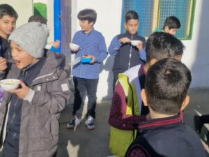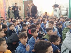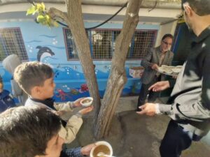 🔹 بعد از مراسم همهی دانشآموزان و مربیان مدرسه میهمان سفرهی پربرکت حضرت زهرا و امام حسین علیهماالسلام شدند.