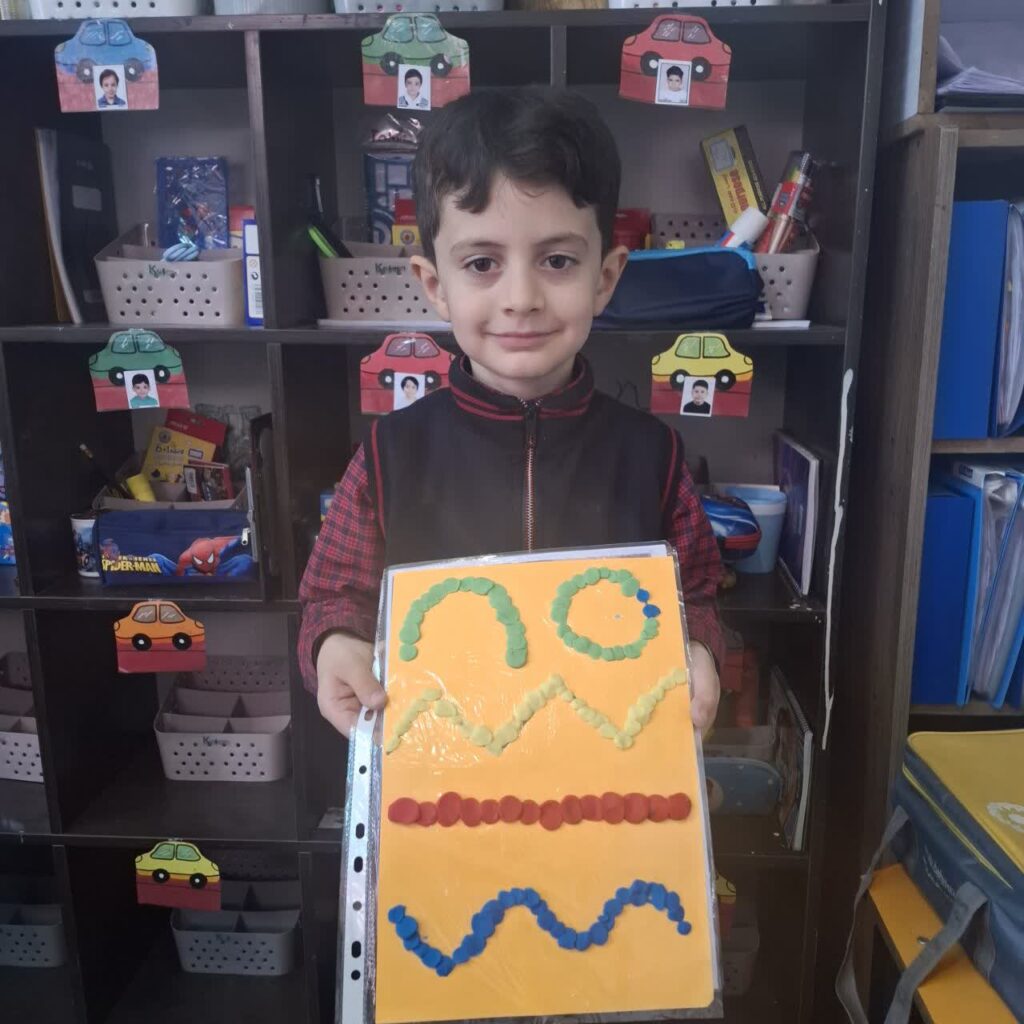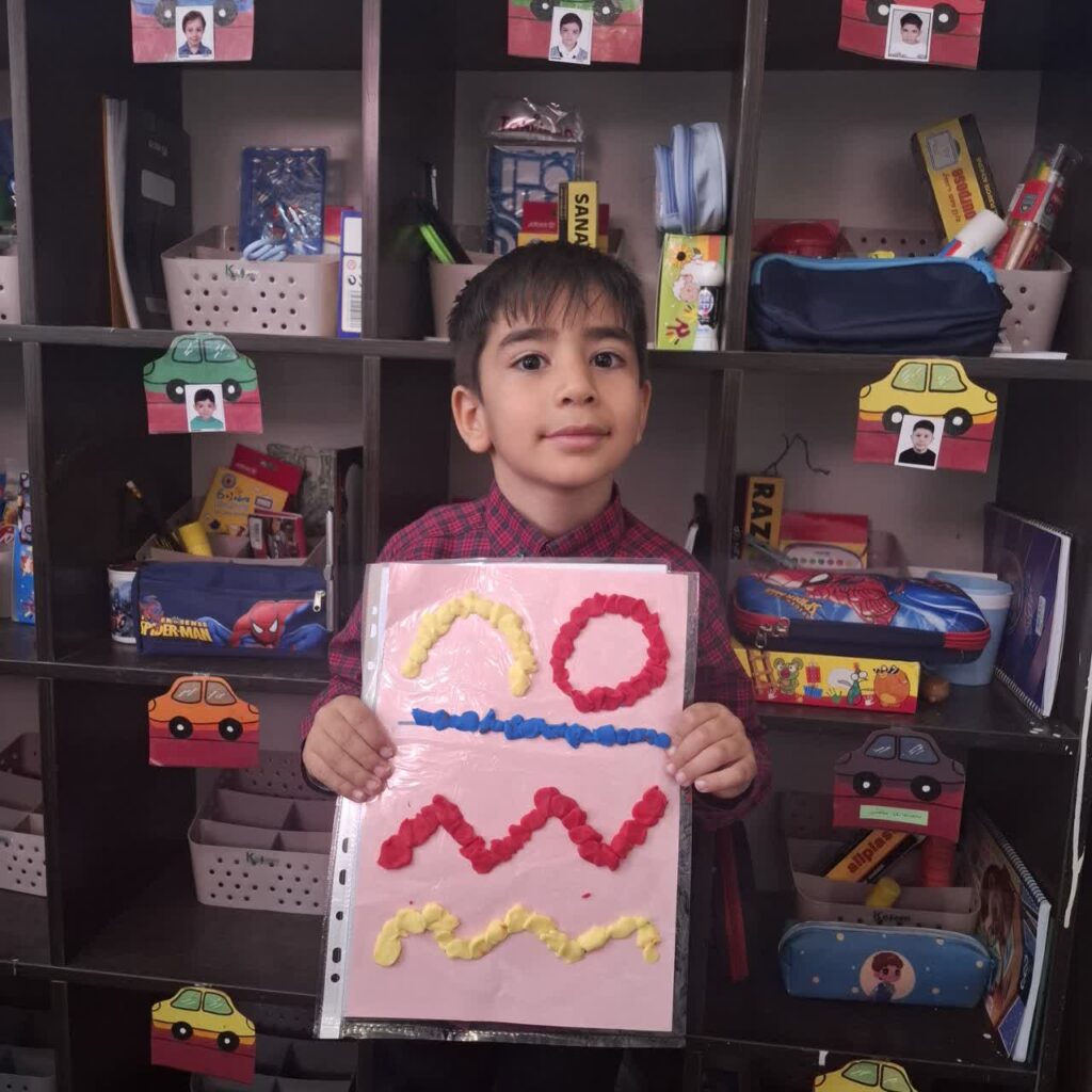مهارت دستورزی با خمیر بازی و آشنایی با انواع خط و رنگهای اصلی